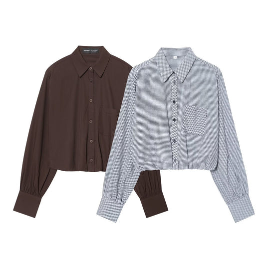 Sold outCasual plaid balloon shirt for women