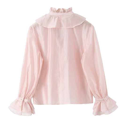 Light luxury palace style lotus leaf edge shirt