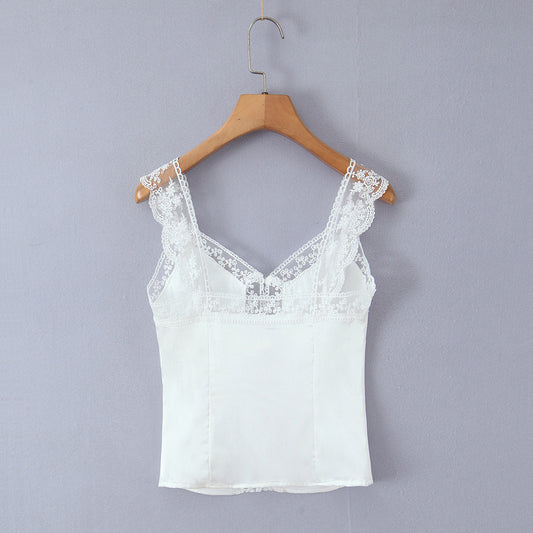 Lace Decorative Satin Texture Strap Top