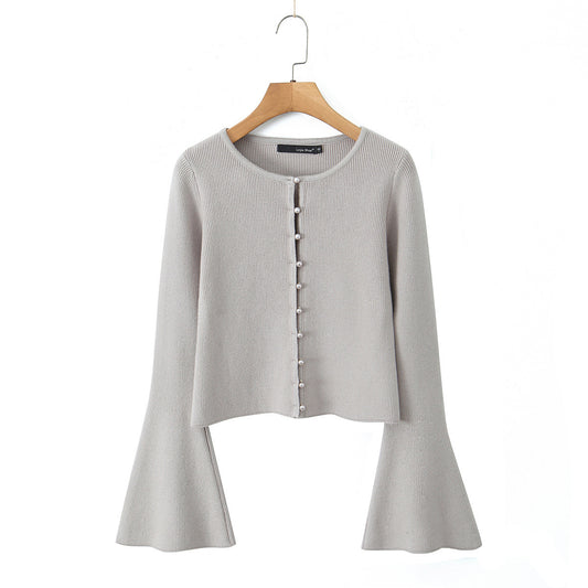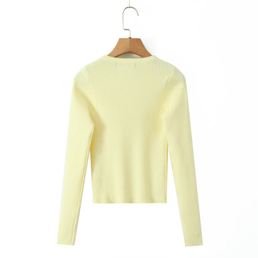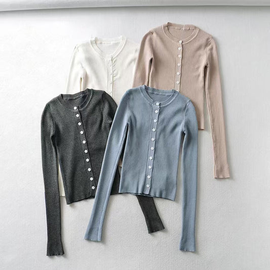 Round neck single breasted slim fit cardigan top