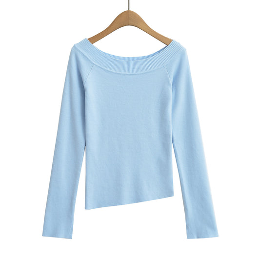 One line off shoulder slanted shoulder elastic slim fit top