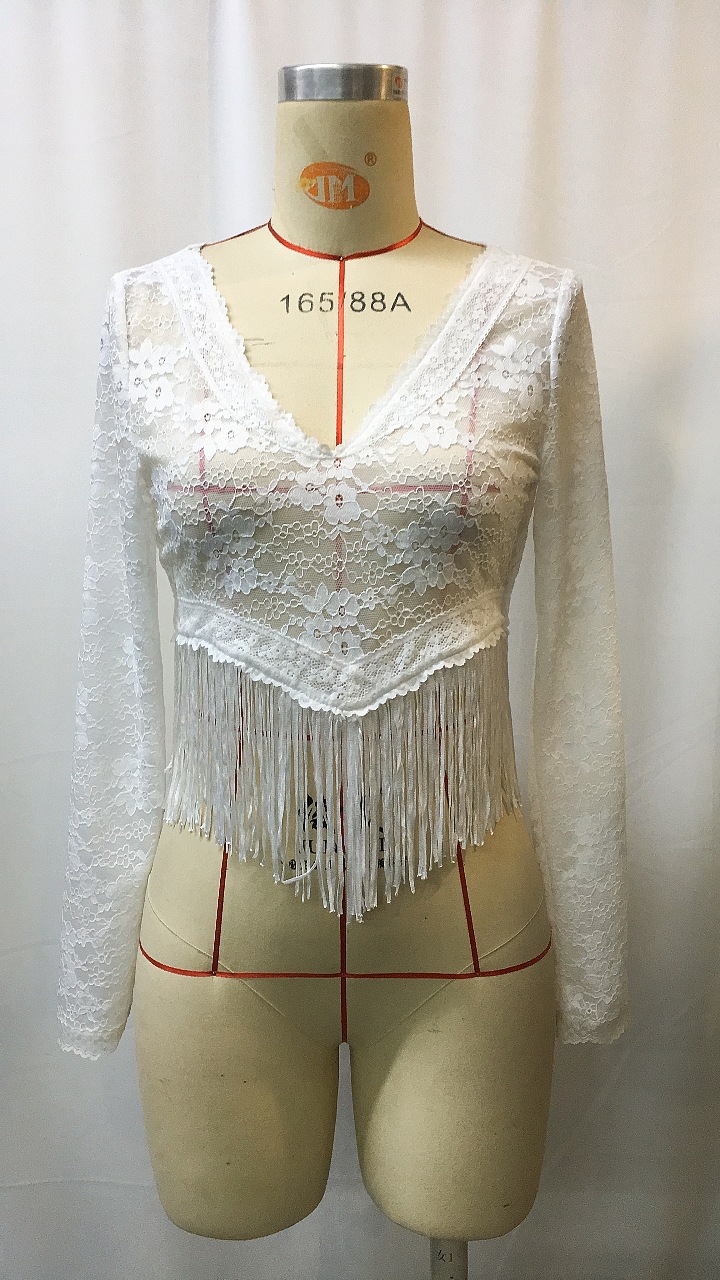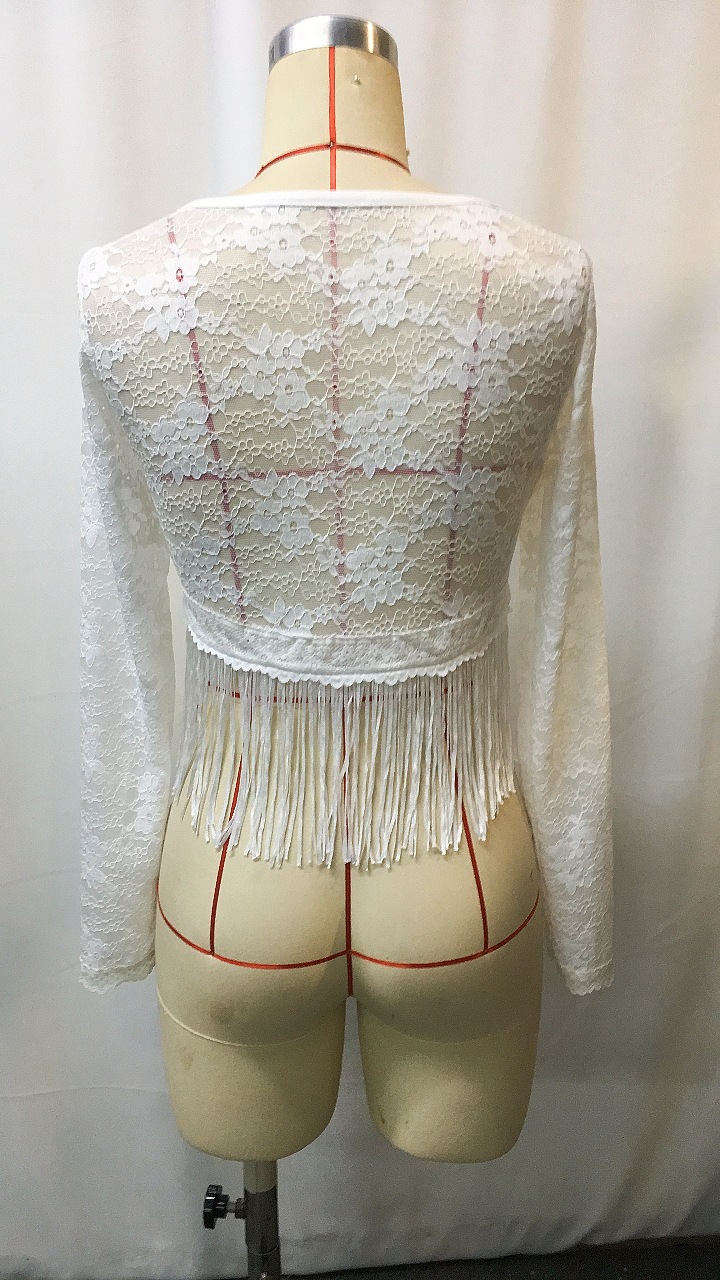 Elegant Lace Tassel Lightweight Solid Color Hollow Out T-Shirt for Women