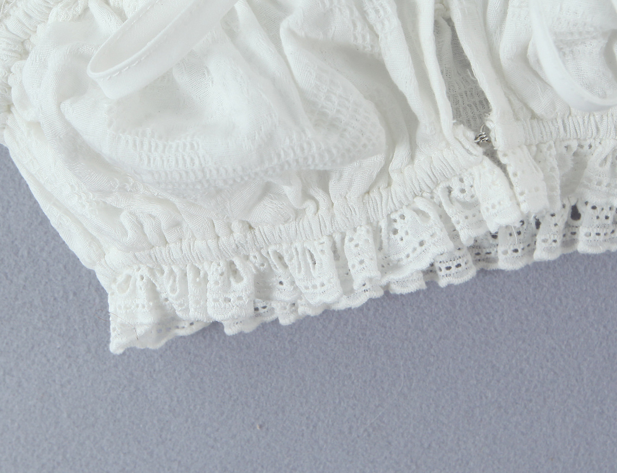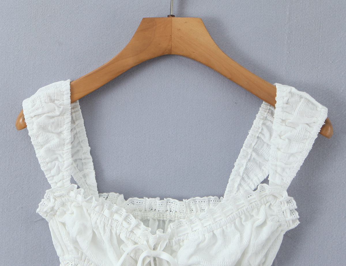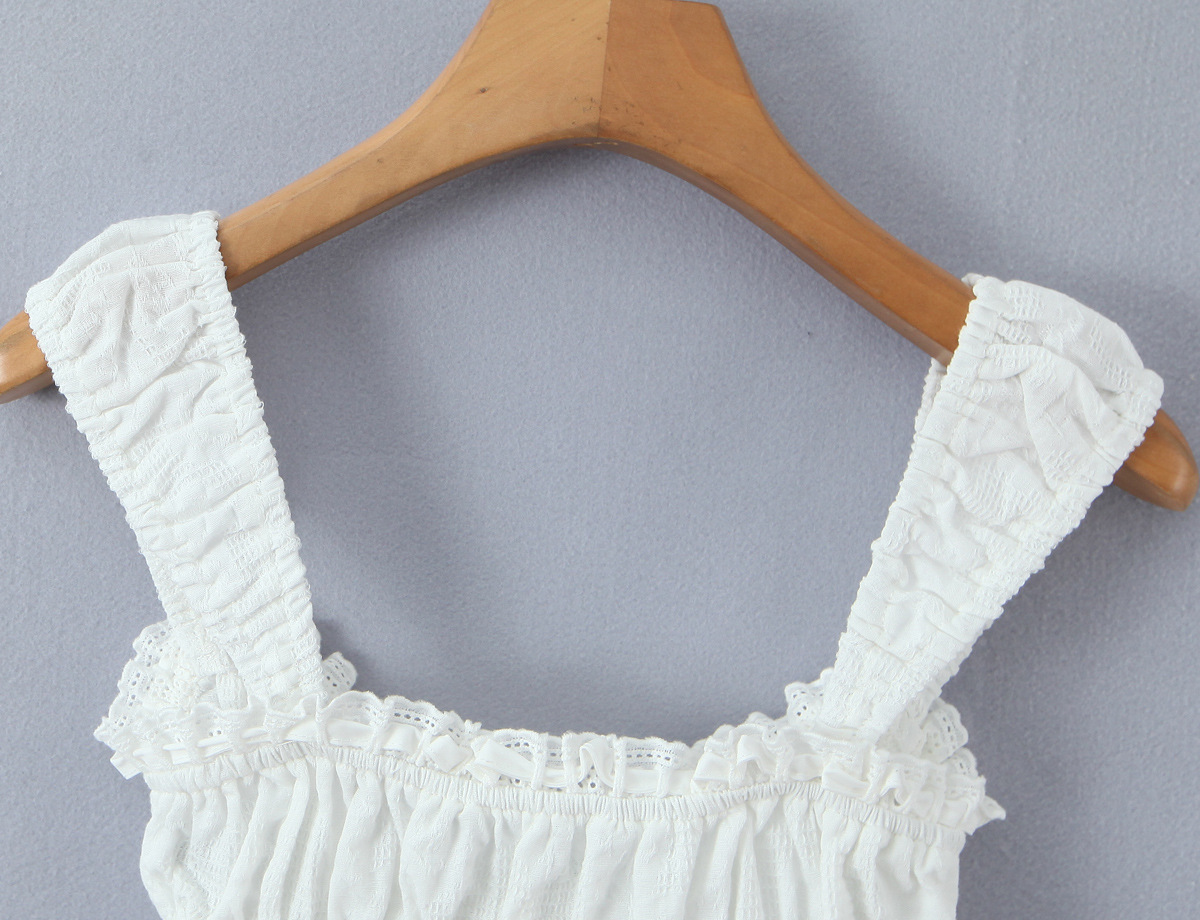 Strap lace border exposed navel white camisole vest
