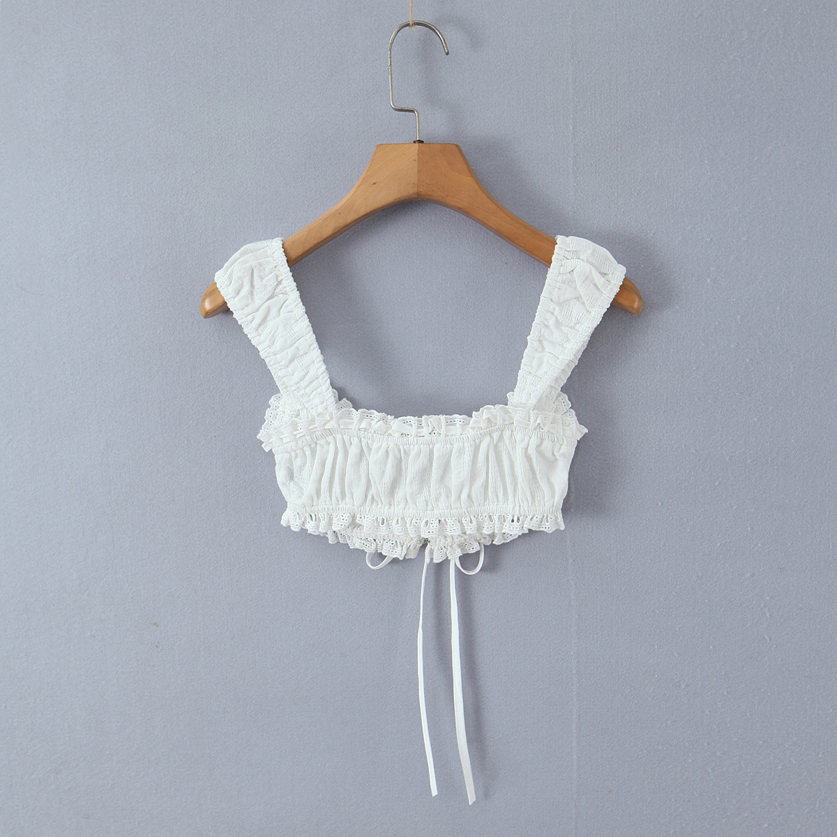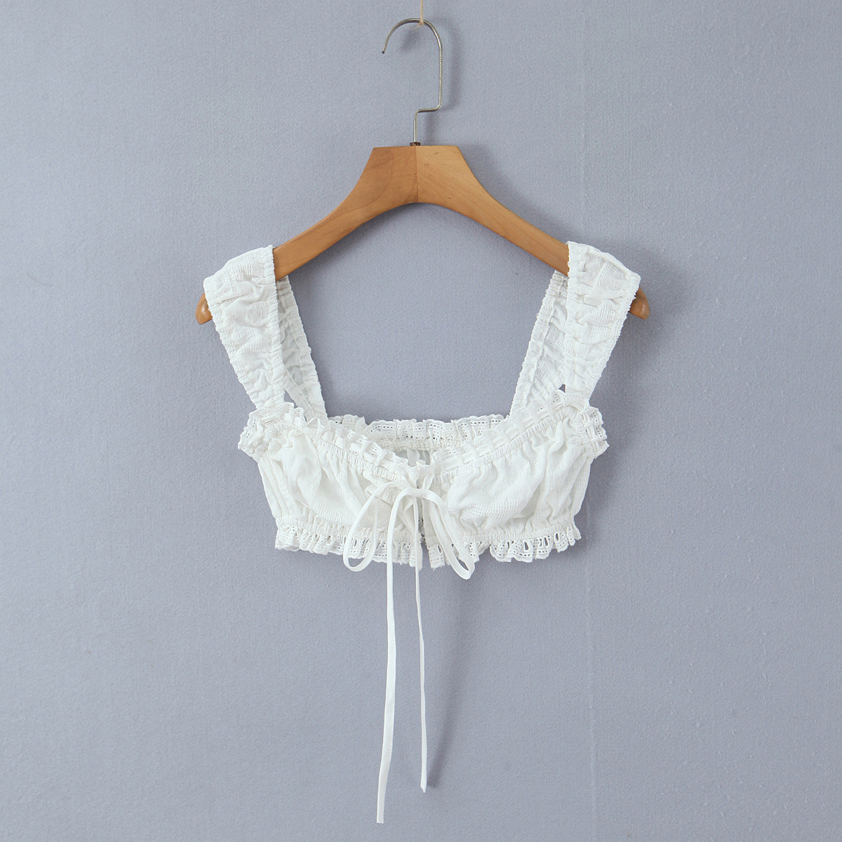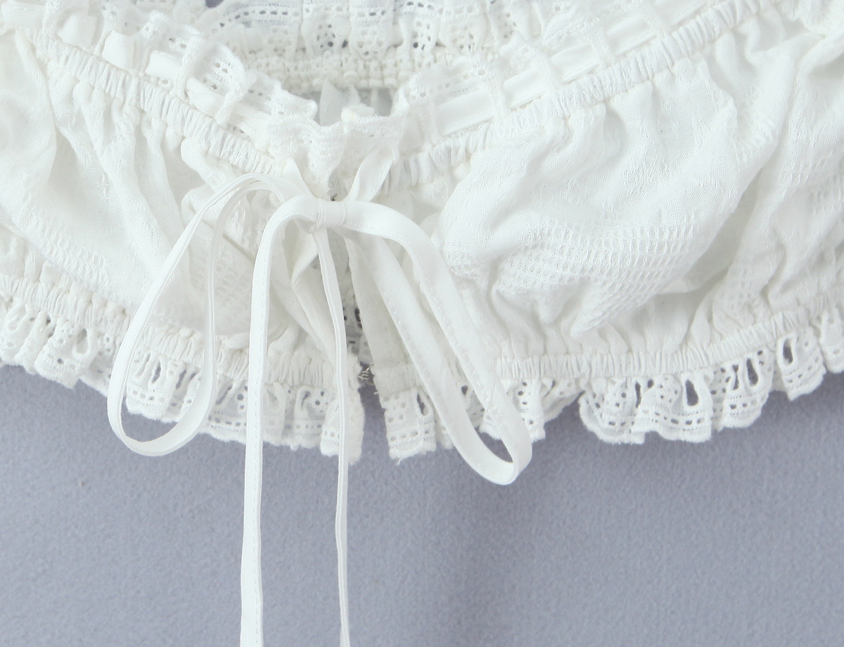 Strap lace border exposed navel white camisole vest